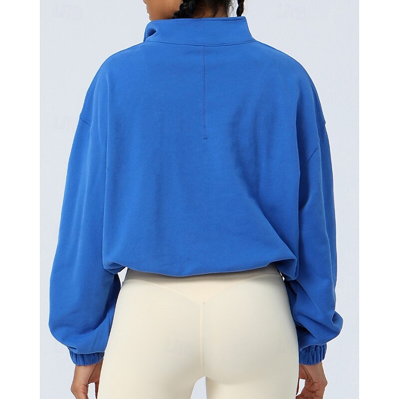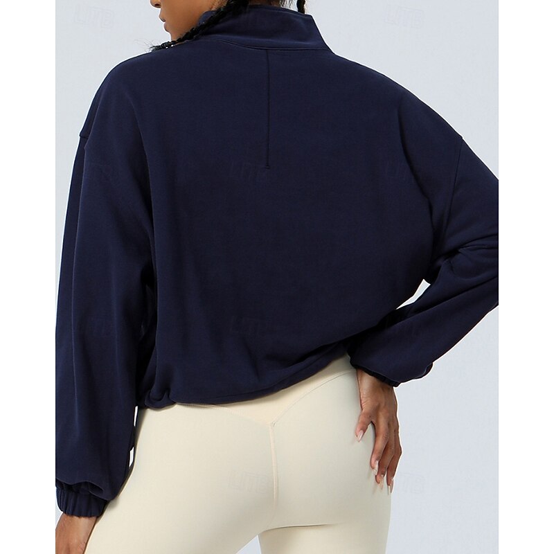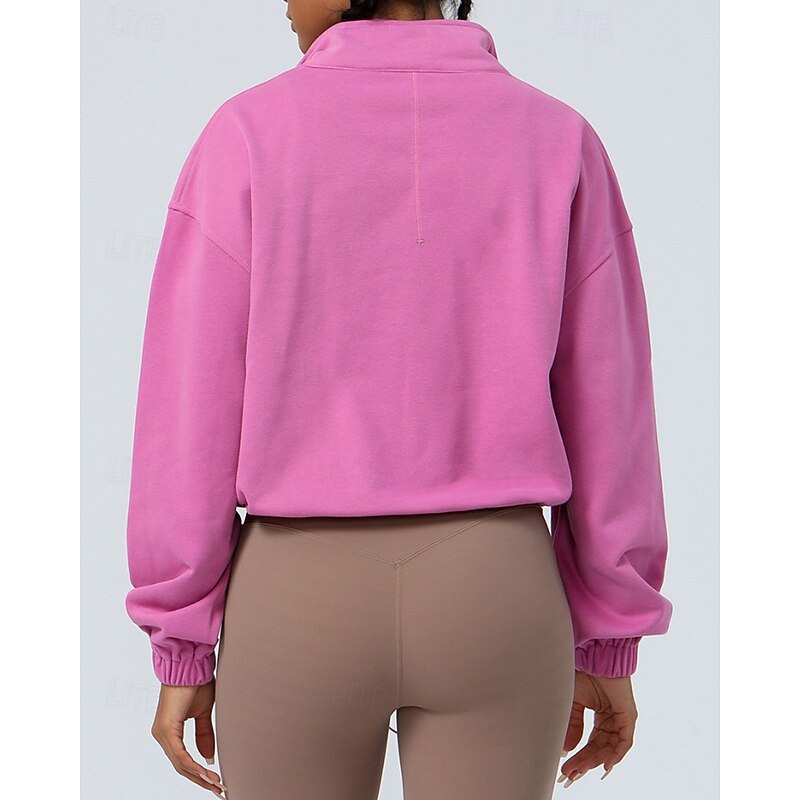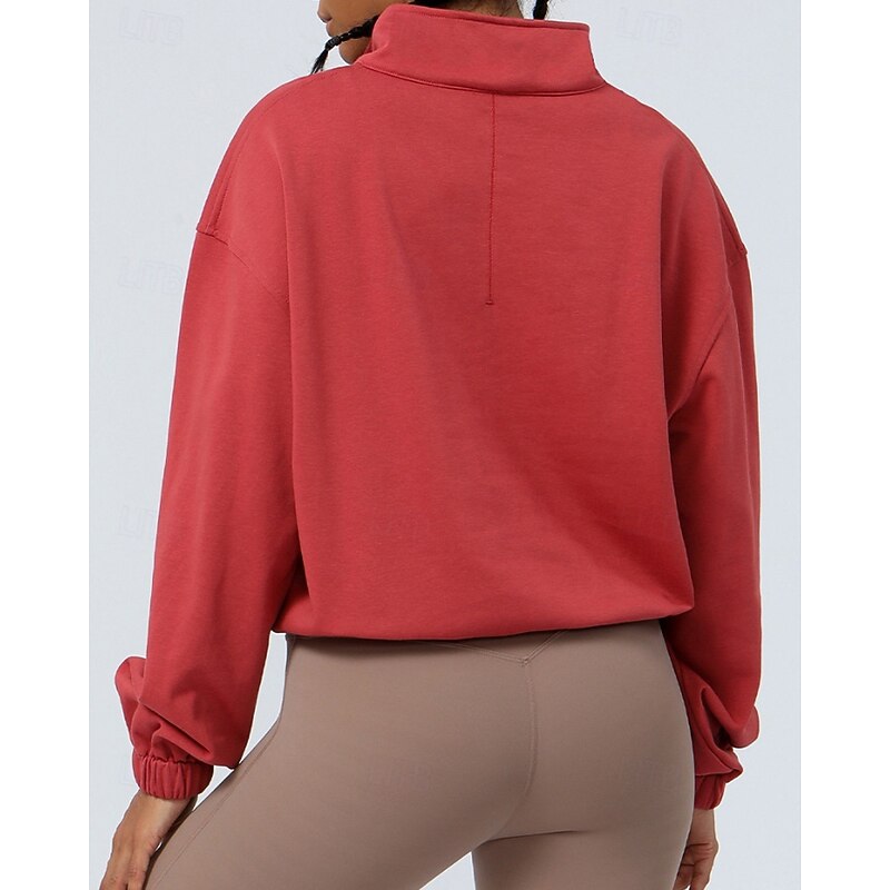 Women's Pullover Sweatshirt Hiking Jacket Sport Jacket Outdoor Elastic Hiking Outfits Hiking Clothes Autumn / Fall Hoodie Cotton Tennis Golf Running Solid Color Violet Navy Burgundy 5