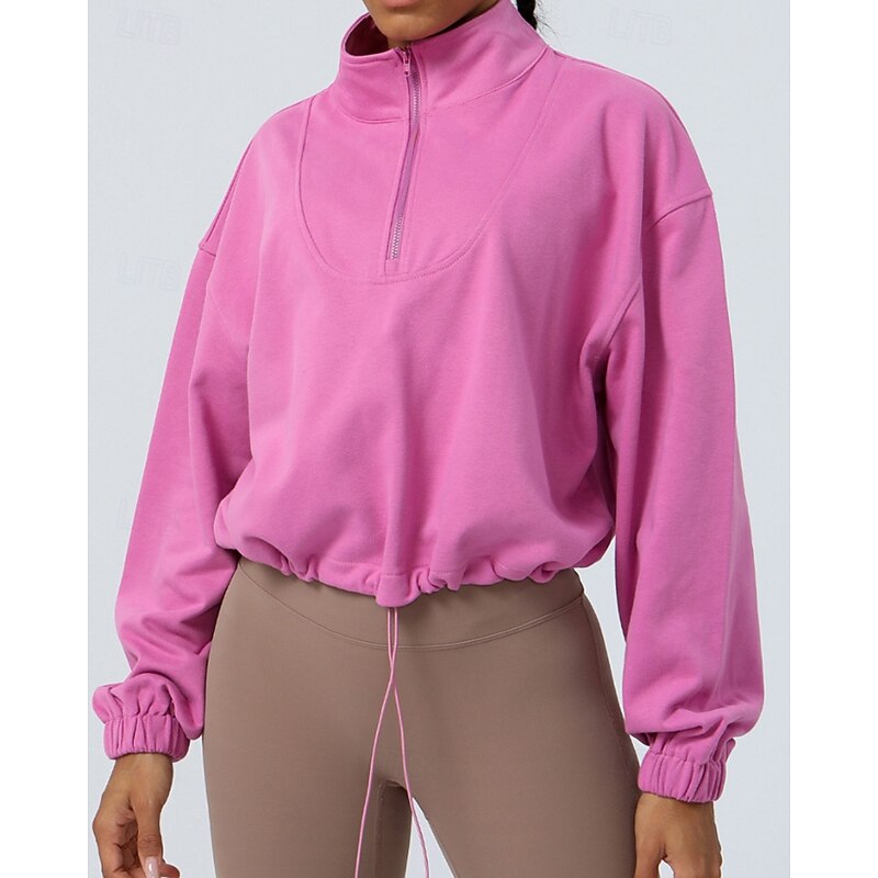 Women's Pullover Sweatshirt Hiking Jacket Sport Jacket Outdoor Elastic Hiking Outfits Hiking Clothes Autumn / Fall Hoodie Cotton Tennis Golf Running Solid Color Violet Navy Burgundy 11