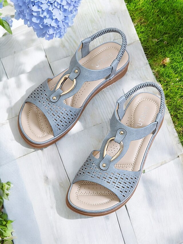 Women's Cutout Slip-On Comfort Sandals - Open-Toe Flat Sandals with Metal Accent for Casual & Outdoor Wear 17