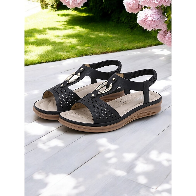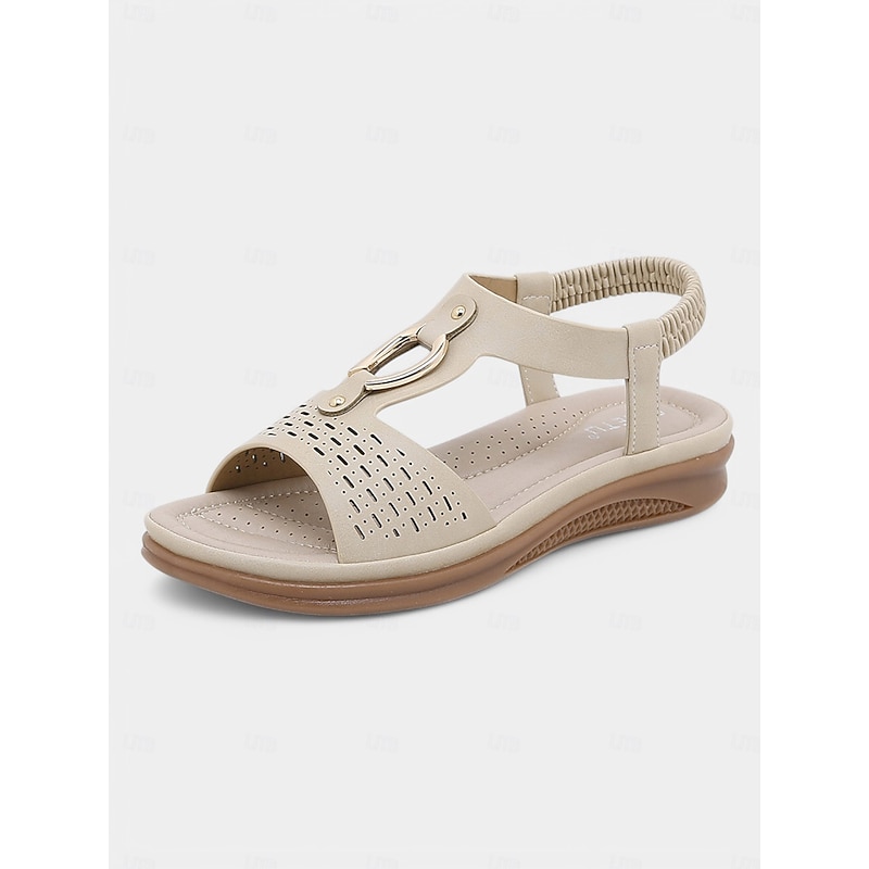More information about Women's Cutout Slip-On Comfort Sandals - Open-Toe Flat Sandals with Metal Accent for Casual & Outdoor Wear