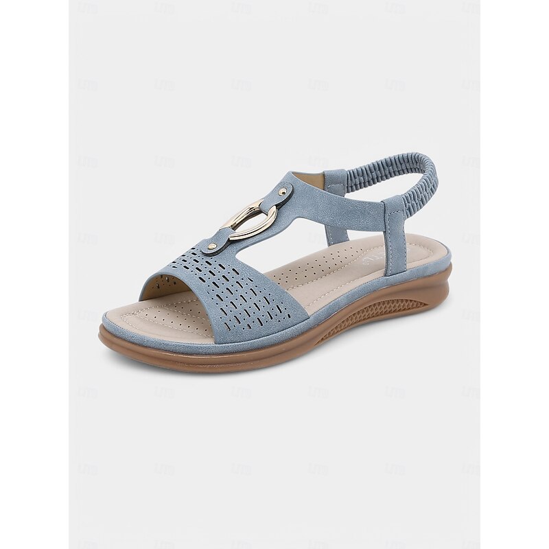 Women's Cutout Slip-On Comfort Sandals - Open-Toe Flat Sandals with Metal Accent for Casual & Outdoor Wear 15