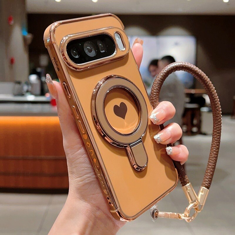 HOT ! Phone Case For Google Pixel 9 Pro Pixel 9 Pro XL Pixel 8 Pro Pixel 8 Pixel 9 Back Cover with Stand Holder with Wrist Strap Shockproof Retro Plating