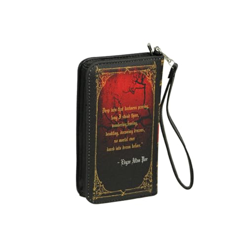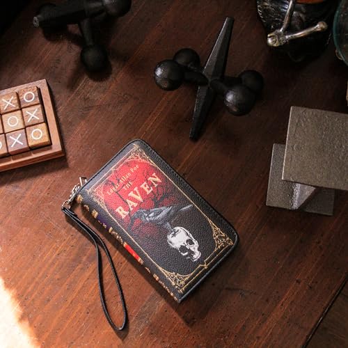HOT ! Things2Die4 The Raven Book-Style Wallet with ID Holder - Snap Closure - Fashionable Wristlet Strap for Horror Enthusiasts - Gothic Style, 7 Inch, Black