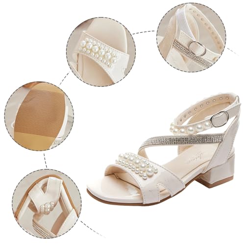 Girls Dress Sandals Kids Low Heels Open Toe Wedding Party School Summer Pearls Glitter Strap Flower Girl Shoes 4