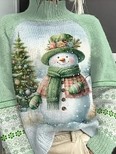 More information about Women's Sweater Pullover Daily Casual Graphic Christmas Tree Snowman Ribbed Turtleneck Knitted Print Long Sleeve Regular Tops Knit Outdoor Weekend Green Fall Winter