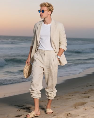 • Various Occasion: Linen suits are the perfect choice for a summer beach wedding, adding elegant charm to the groom. Ideal for birthday parties, business trips, vacations, or daily wear, this versatile piece is a must-have in every man's wardrobe. Breathable and lightweight, it keeps you cool and stylish without feeling stuffy in hot weather.