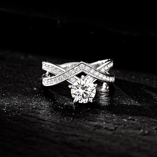 • High Quality Material: the ring is made of 925 sterling silver surface electroplating 14K plated white gold anti-oxidation, and the ring is polished with high precision to make it more shiny. A (6.5mm)1-carat moissanite is used in the middle, and 47 high-purity three-dimensional zircon is inlaid on the side