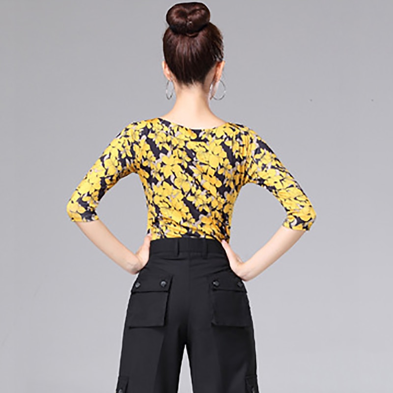 Latin Dance Ballroom Dance Top Printing Splicing Women's Performance Training Half Sleeve High Polyester 9