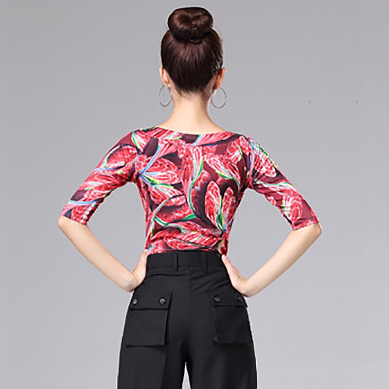 Latin Dance Ballroom Dance Top Printing Splicing Women's Performance Training Half Sleeve High Polyester 13