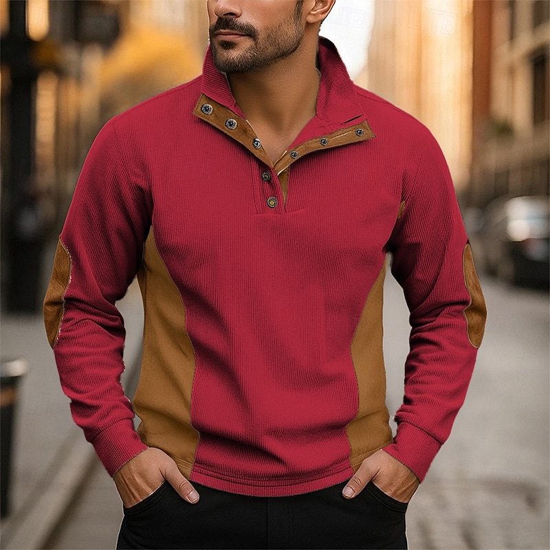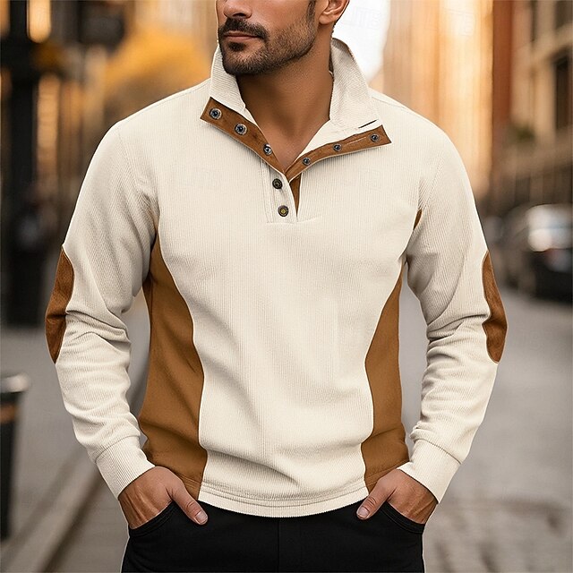 More information about Men's Sweatshirt Apricot Black White Red Blue Standing Collar Color Block Patchwork Sports & Outdoor Daily Holiday Polyester Corduroy Streetwear Basic Casual Fall Winter Clothing Apparel Hoodies