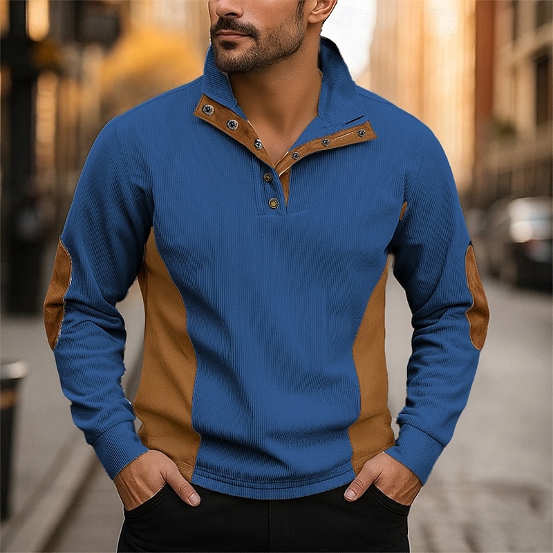 Highlights - Stay warm and stylish in our Fall and Winter collection for men - Made from high-quality polyester and corduroy fabric - Long sleeve design for added warmth - Featuring a trendy color block and patchwork pattern - Perfect for the fashion-forward man
