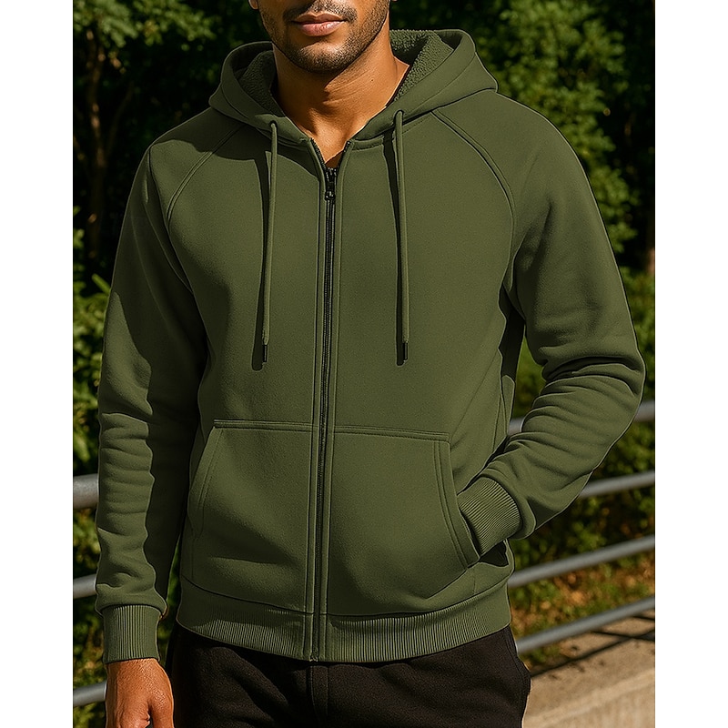 More information about Men's Running Jacket Outdoor Jacket Hooded Jacket Drawstring Pocket Long Sleeve Top Athleisure Solid Colored Thermal Warm Breathable Gym Workout Running Sportswear Activewear Black Green Khaki