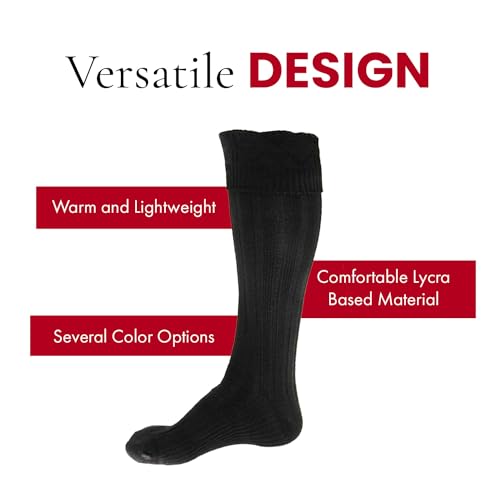 • Thoroughly Crafted: Constructed from durable acrylic, our kilt socks are built to withstand rigorous activities like golf or hiking; The ribbed design of our Scottish hose not only enhances visual appeal but also ensures superior elasticity, keeping them securely in place throughout the day