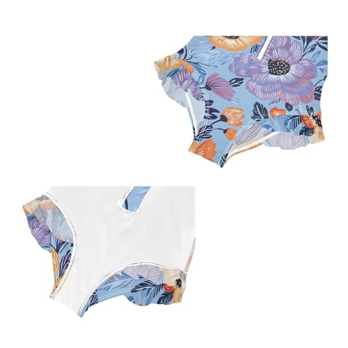 CHIFIGNO Girls One Piece Swimsuit Quick Dry Rashguard Zipper Swimwear, Orange Purple Flowers Blue 3T 6