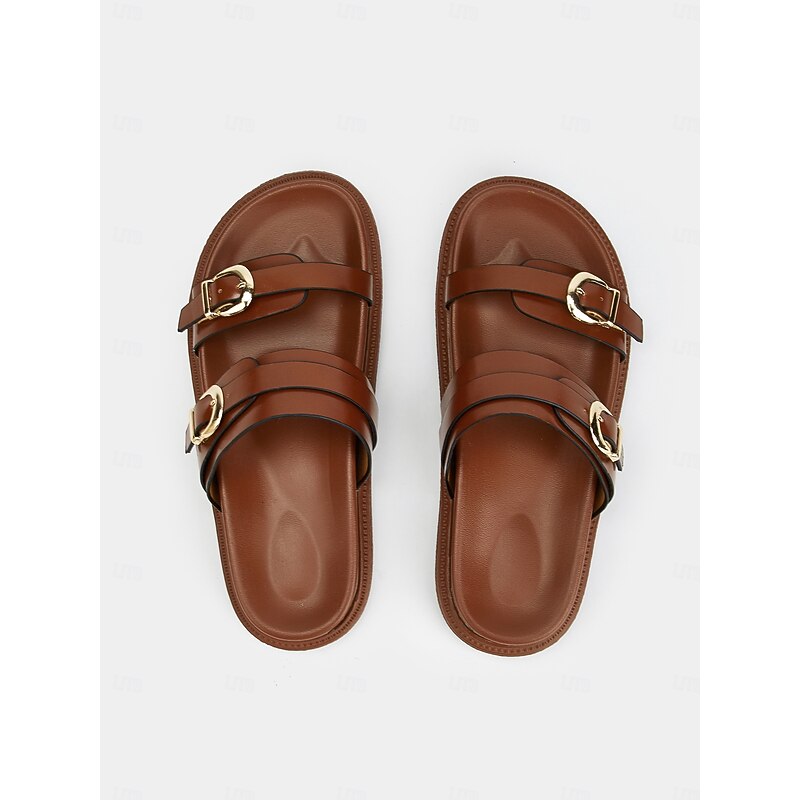 Women's Black Buckle Sandals - Trendy Double Strap Design, Comfortable Footbed for Daily Wear and Relaxed Casual Style 10
