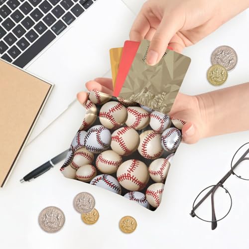 Baseball Ball Pattern Coin Purse Leather Pouch Change Purse, Squeeze Coin Pouch for Cards, Keys & Lipsticks, Unisex 7