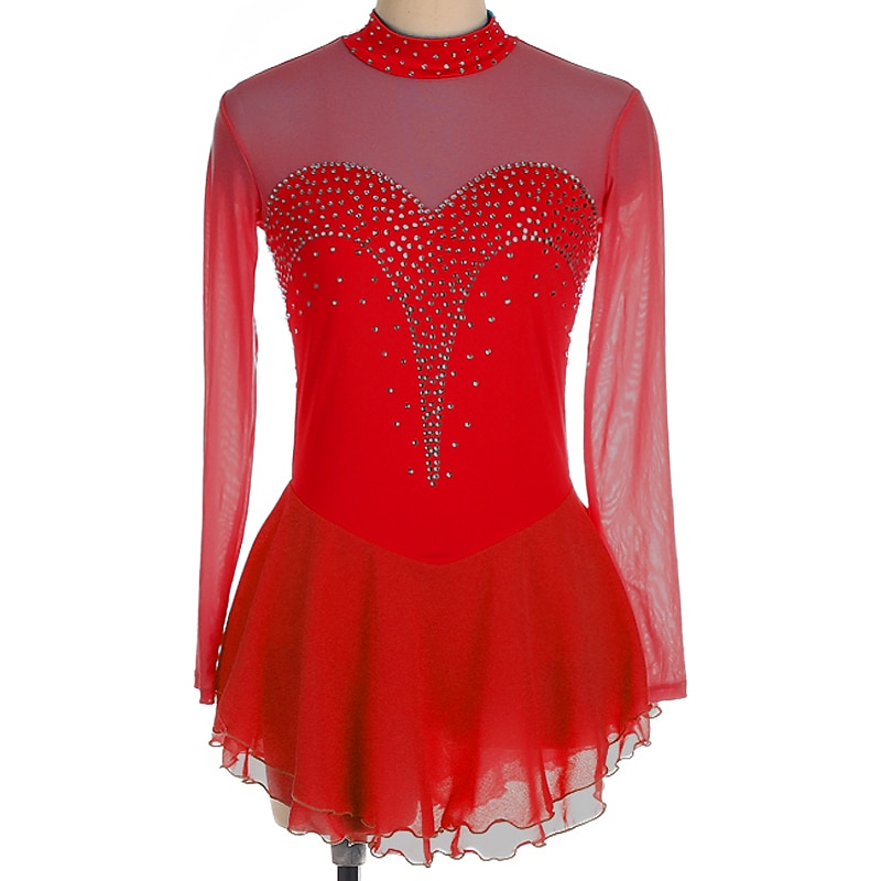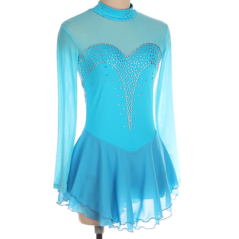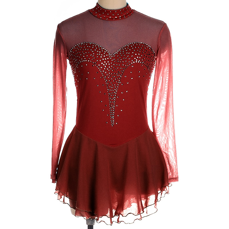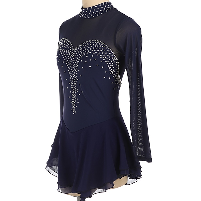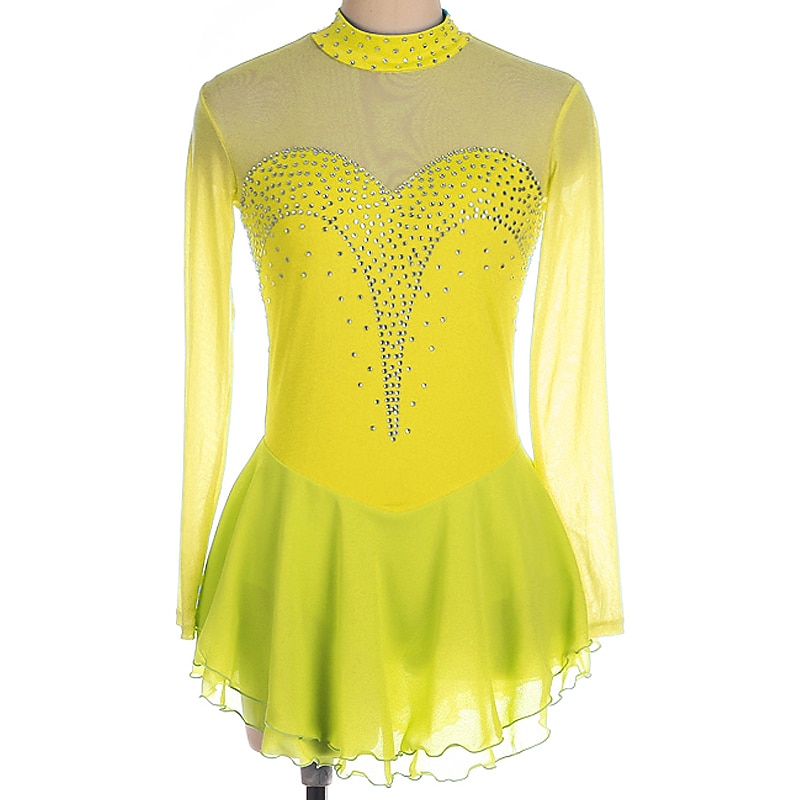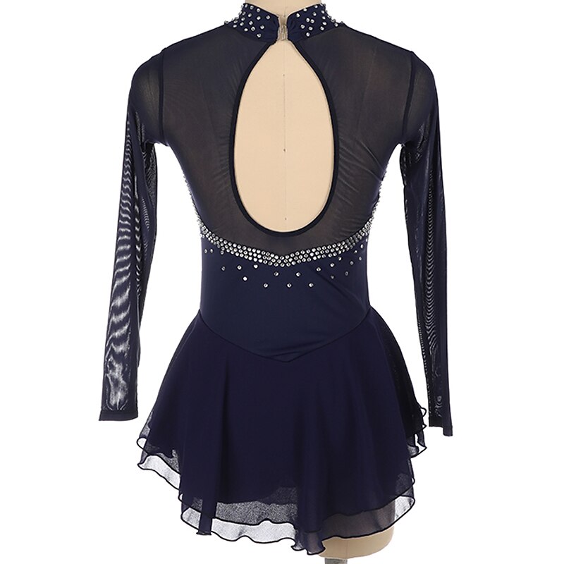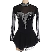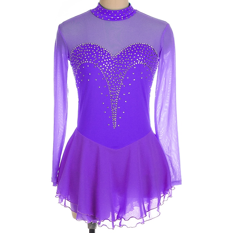 More information about Figure Skating Dress Women's Girls' Ice Skating Dress Black Purple Yellow Open Back Spandex High Elasticity Training Competition Skating Wear Handmade Crystal / Rhinestone Long Sleeve Ice Skating