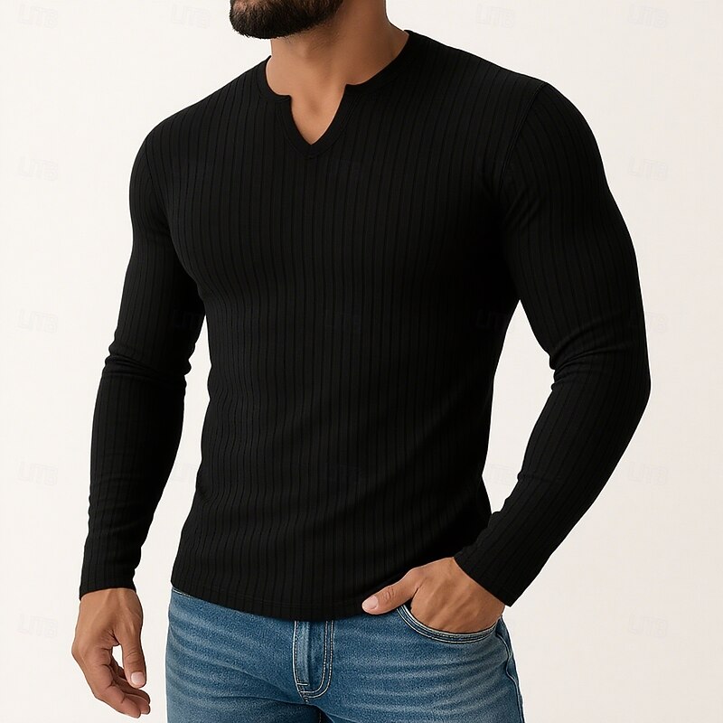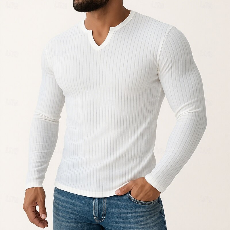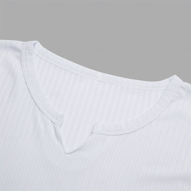 More information about Men's T Shirt Muscle Shirt Ribbed Knit tee Tee Top Long Sleeve V Neck Summer All Seasons Plain Pit Strip Fashion Designer Basic Knitting Plain Vacation Street Casual Black White Blue Top Tee for Men
