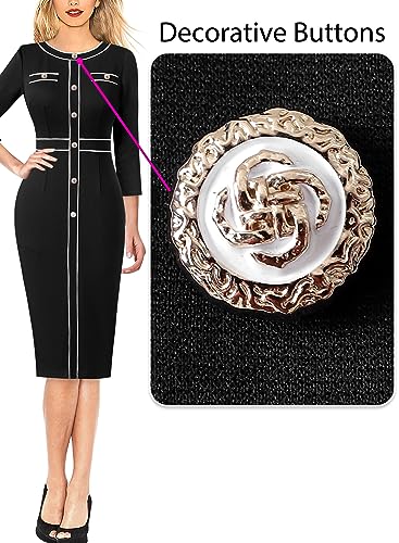 VFSHOW Womens Buttons Patchwork Work Business Office Party Bodycon Pencil Sheath Dress 6