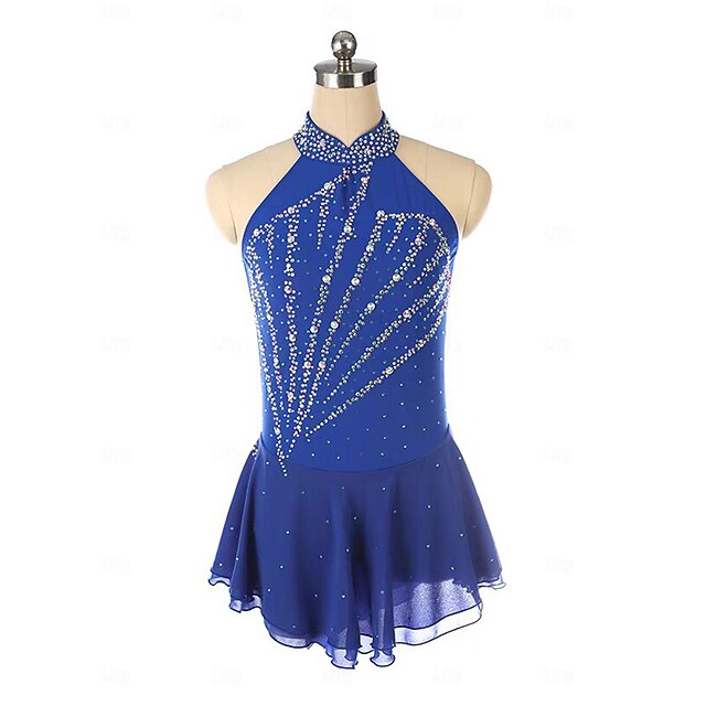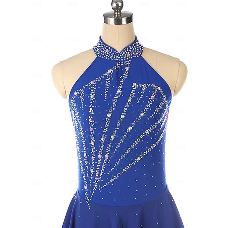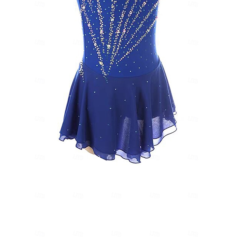 More information about Figure Skating Dress Women's Girls' Ice Skating Dress Royal Blue Open Back Asymmetric Hem Mesh Spandex Stretchy Training Practice Professional Skating Wear Thermal Warm Crystal / Rhinestone Sleeveless
