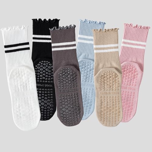 3 Pairs Pilates Socks With Grips for Women Non Slip Grip Ruffle Yoga Grippy Socks 6