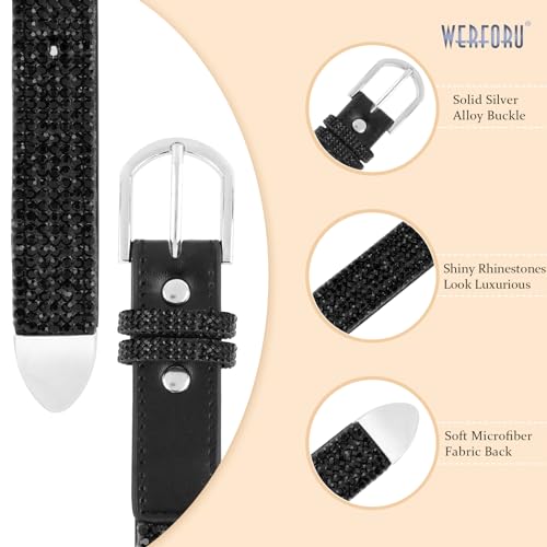 WERFORU Women Bling Rhinestone Soft Jeans Dress Belt Shiny Crystal Waist Belt with Silver Buckle 7