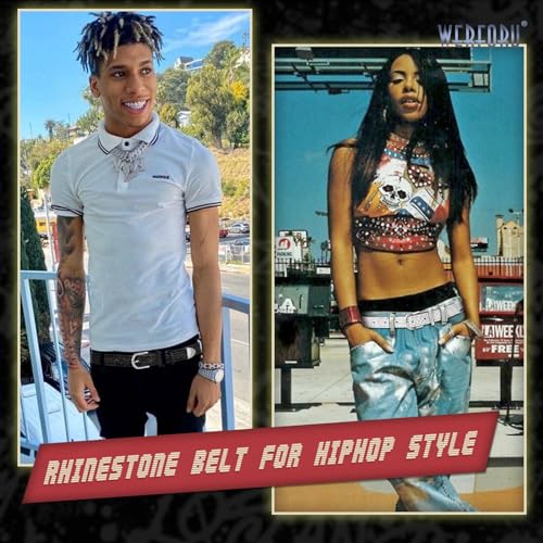 WERFORU Women Bling Rhinestone Soft Jeans Dress Belt Shiny Crystal Waist Belt with Silver Buckle 5