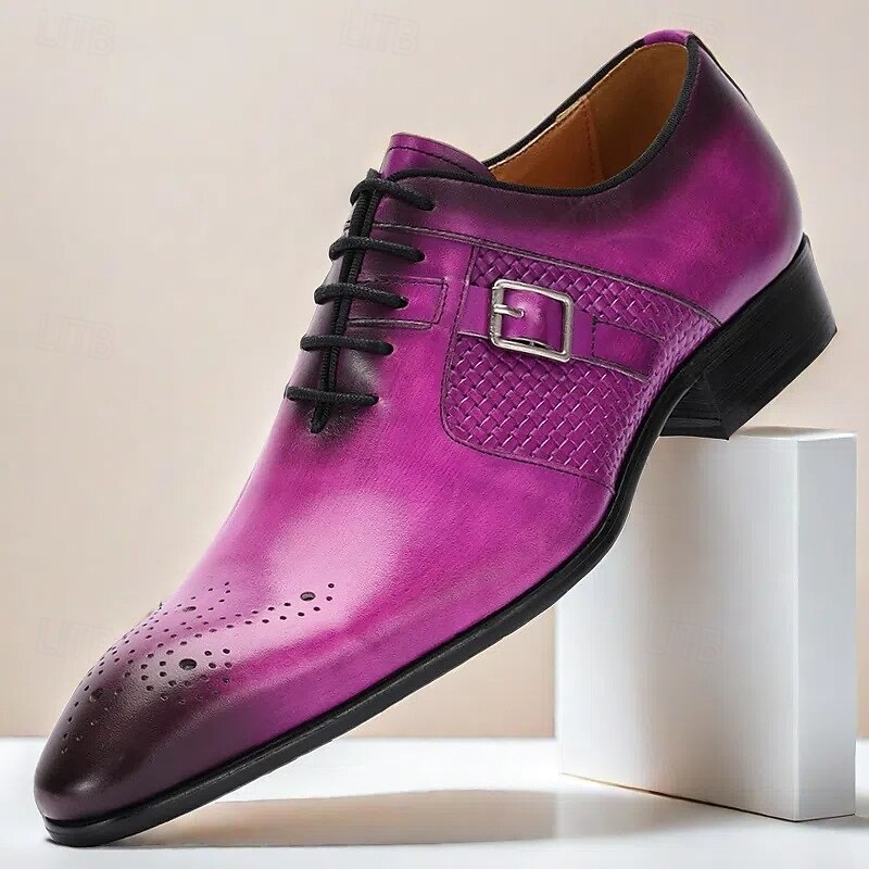 HOT ! Men's Purple Genuine Leather Monk Strap Prom Shoes – Elegant Buckle Dress Shoes with Brogue Detailing for Formal Events & Parties