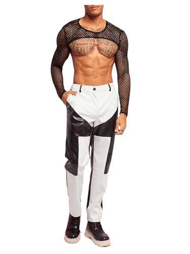 More information about WDIRARA Men's Fishnet Sheer Mesh Long Sleeve T-Shirt Crop Top Slim Fit Party Tee Tops