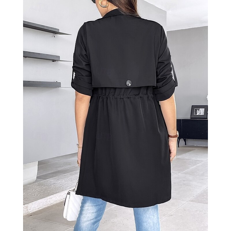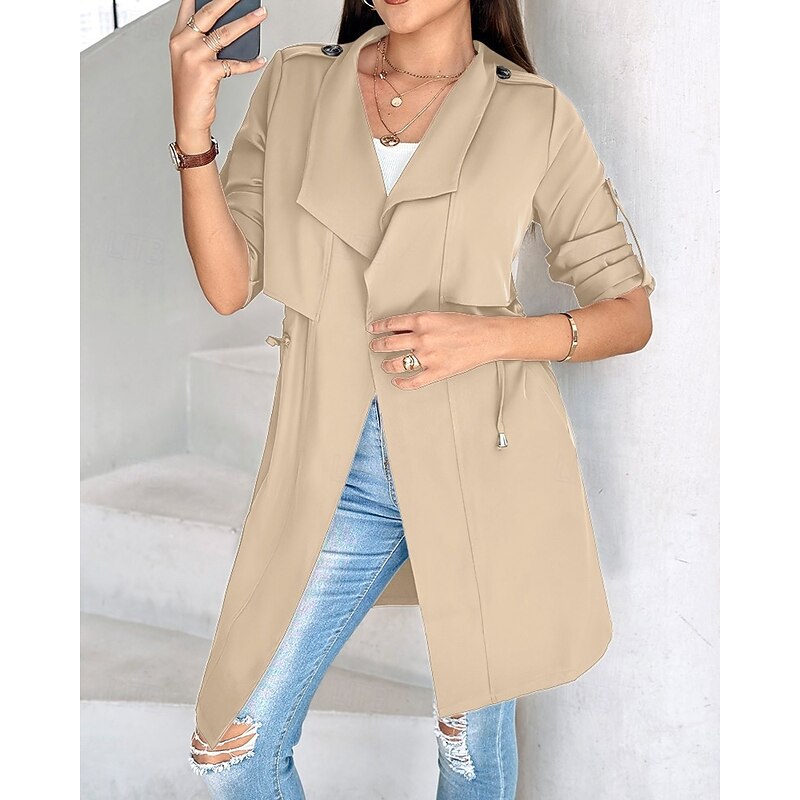 Highlights Product Highlights Product Highlights: [Fabric]: Crafted from lightweight, breathable material, this women's shrug offers comfort and durability. The soft texture and high-quality fabric make it perfect for everyday wear. [Fit]: Featuring a classic long sleeve design, this shrug provides a relaxed yet flattering fit. The adjustable drawstring waist allows you to tailor the fit to complement your body shape, offering both style and flexibility. [Design Highlights]: The shrug showcases a modern open-front style with a wide lapel for a sophisticated touch. Its three-quarter roll-tab sleeves add a casual yet elegant element, making it a versatile piece for seasonal transitions. [Occasions]: Ideal for daily wear and work environments, this shrug enhances both casual and formal outfits. Its classic design makes it suitable for a range of settings, ensuring you stay stylish at all times. [Size Range]: Available in a variety of sizes including S, M, L, XL, and 2XL, ensuring a comfortable fit for different body types and preferences.