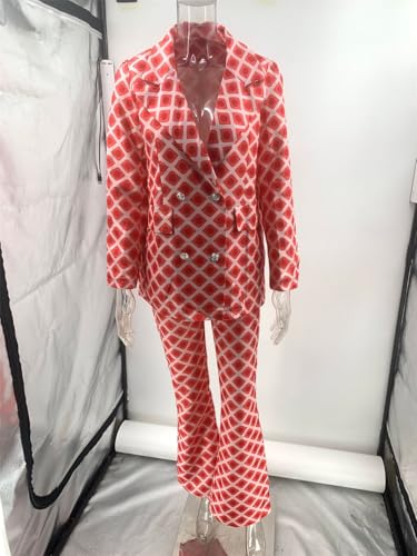 Women's Sexy 2 PCS Printed Double-Breasted Blazer Jackets Bodycon Pants Cocktail Party Outfits Tracksuit Sweatsuit Set 2