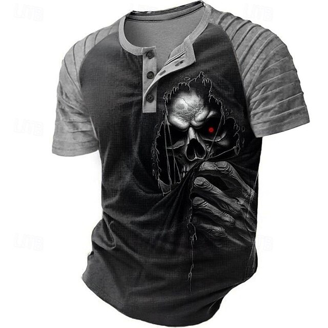 $22.99 - Men's Dark T Shirt Short Sleeve 3D Print Retro Vintage Gothic Party Street Summer Spring Black Gray Henley Collar Henley T-Shirt 2025. Shop for cheap Halloween T shirts online? Buy at lightinthebox.com on sale today!
