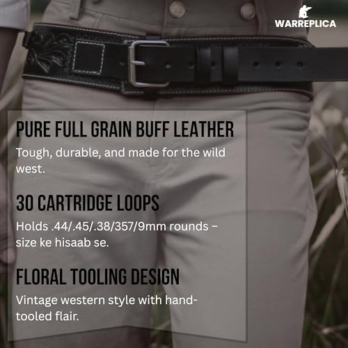 • LEATHER USED: Warreplica 44 caliber ammo belt and Cowboy enforcer ammo belt is made of Full Grain Buff Leather. It is pure leather gun belt.