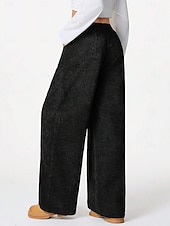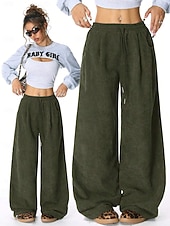 More information about Women's EU / US Size Wide Leg Pants Trousers Comfort Casual / Sporty Full Length Mid Rise Solid Colored Drawstring Pocket Wide Leg Soft Comfortable Micro-elastic Athleisure Casual Daily Black 1# Army