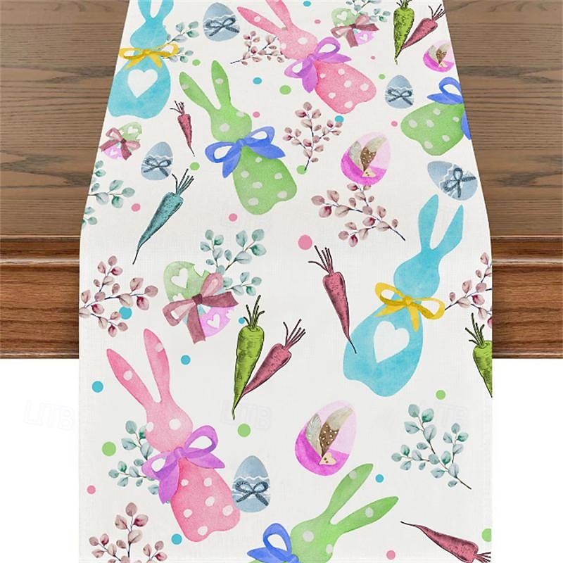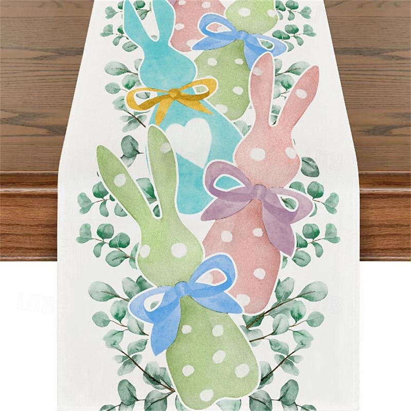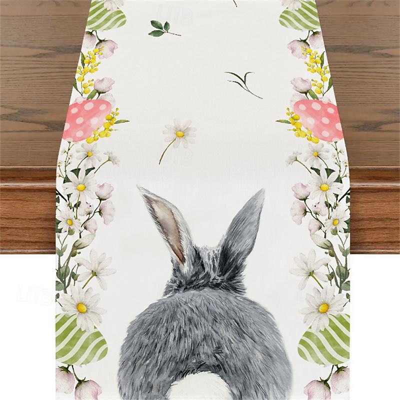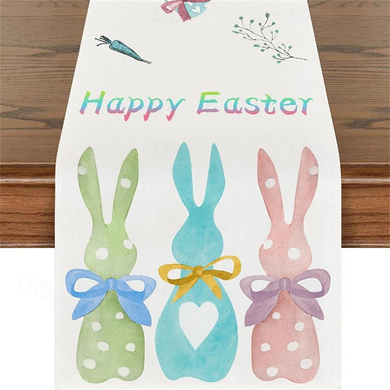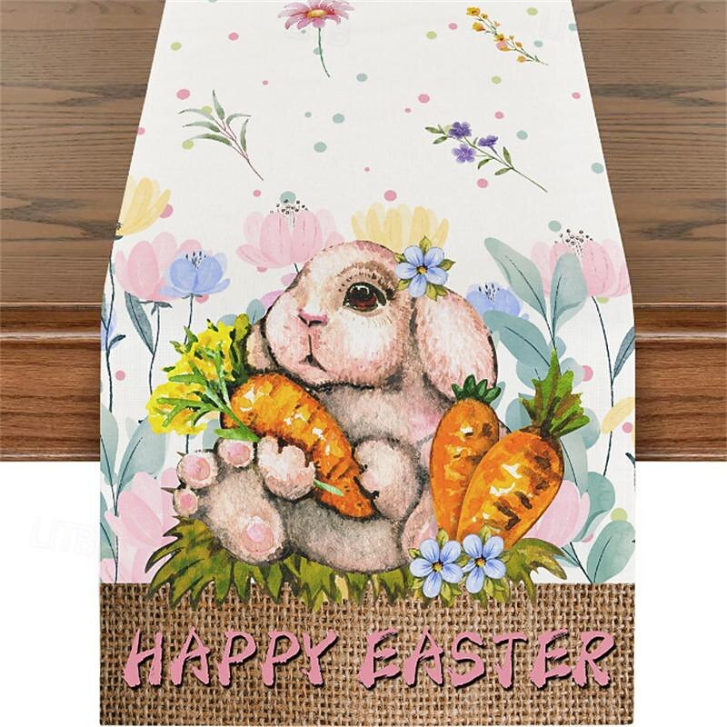 HOT ! Easter Pattern Table Runner Holiday Table Runner Seasonal Farmhouse Burlap Table Cloth for Wedding Anniversary Home Kitchen Dinner Table Party Decor