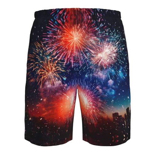 Explosion Firework 3D Print Summer Beach Casual Shorts for Men,Perfect for Surfing,Running,and Everyday Wear 3