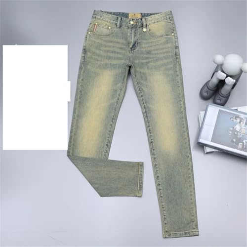 HOT ! Men's Retro Mud-Color Jeans Thin Stretch Slim Fit Skinny Street Skinny Long Pants
