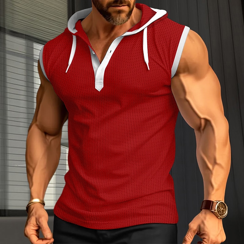 More information about Men's Waffle Shirt Tank Top Undershirt Sleeveless Shirt Sleeveless Hooded Summer Plain Fashion Designer Muscle Outdoor Going out Gym Black White Red Top Tee for Men