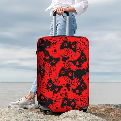 HOT ! Game Joystick On Red Background Luggage Suitcase Covers Elastic Washable Game Theme Luggage Protector Travel Suitcase Protective Cover For Kid And Adult, S (Fit 18-21 Inch Luggage)