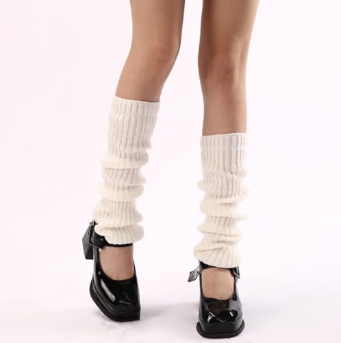 Womens Knitted Stirrup Leg Warmers Knitted Yoga Socks Winter Warm Knit Crochet Boot Cuffs Topper for Dance(White) 6