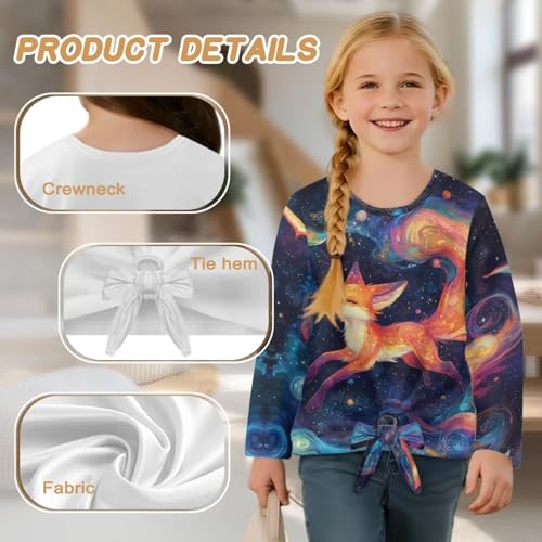 Xpyiqun Long Sleeve Shirt Trendy Tie Knot Front Graphic Tees Tunic Tops for Girls 5-12 Kids Athletic T-Shirts 5