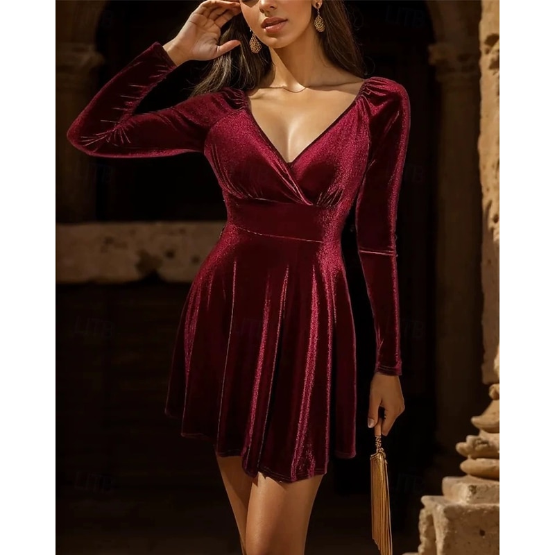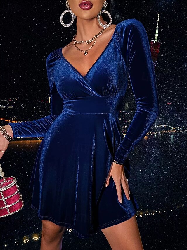 More information about Women's Midi Dress Velvet Dress Cocktail Dress Elegant Fashion Modern Outdoor Party Party Evening Wear Regular Fit Plain Long Sleeve Crew Neck Black Wine Dark Green Dark Blue Spring Autumn