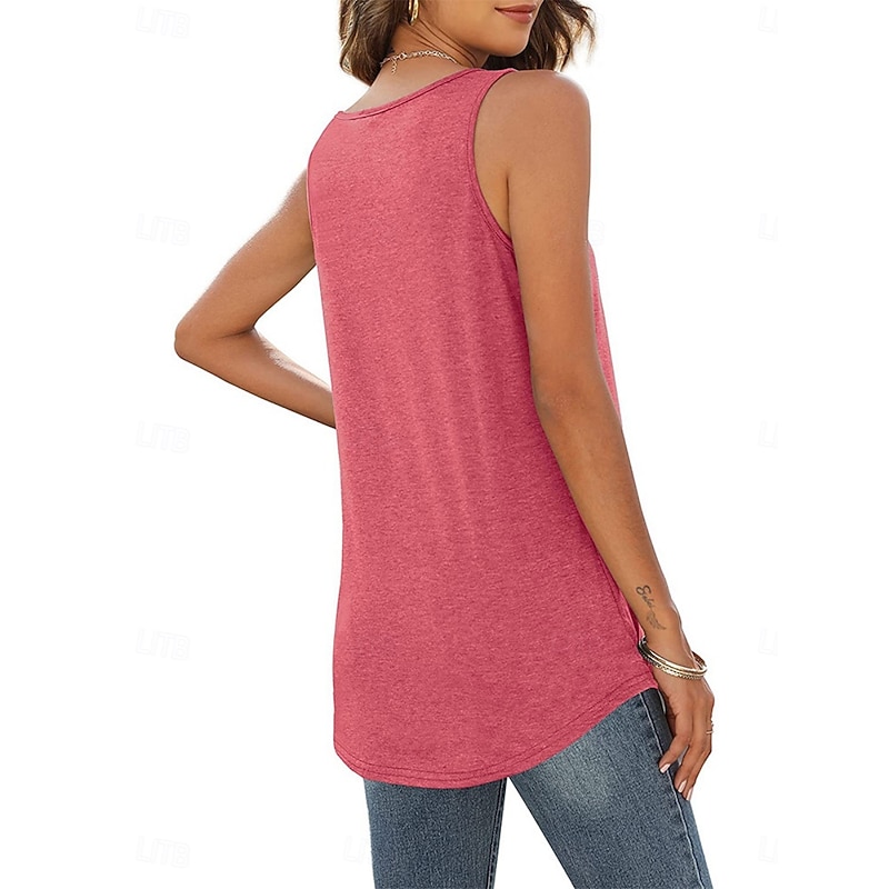 Women's Tank Top Plain Fashion Stylish Basic Sleeveless U Neck Regular Tops Daily Weekend Black White Pink Blue Green Summer 5
