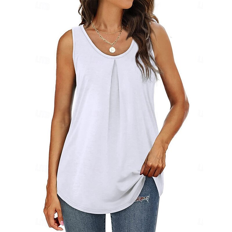 Women's Tank Top Plain Fashion Stylish Basic Sleeveless U Neck Regular Tops Daily Weekend Black White Pink Blue Green Summer 14