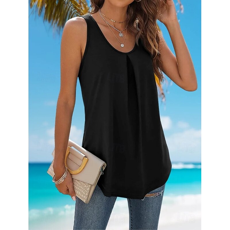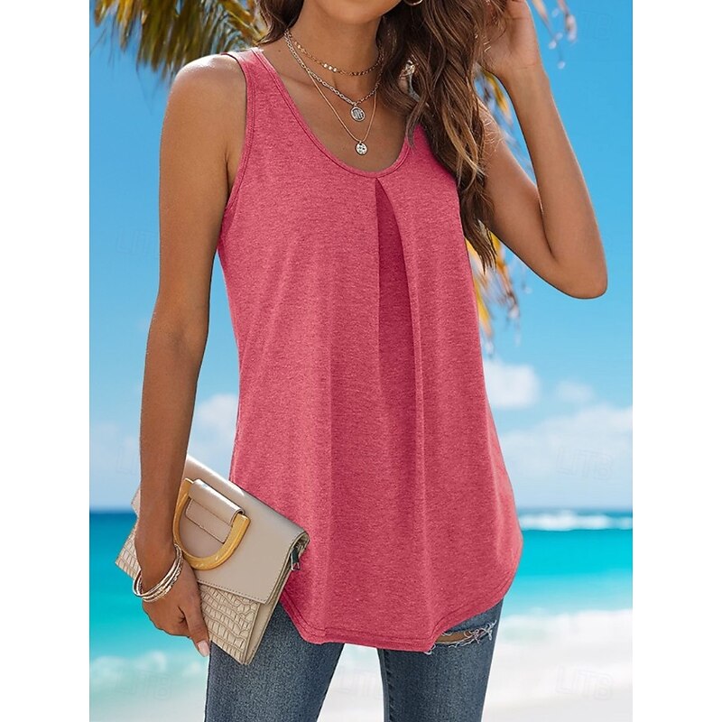 Women's Tank Top Plain Fashion Stylish Basic Sleeveless U Neck Regular Tops Daily Weekend Black White Pink Blue Green Summer 26