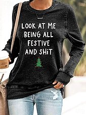 More information about Women's Pullover Sweatshirt Graphic Tree Letter Casual Long Sleeve Crew Neck Regular Tops Street Casual Holiday Print Black Pink Red Green Gray Spring Fall Winter