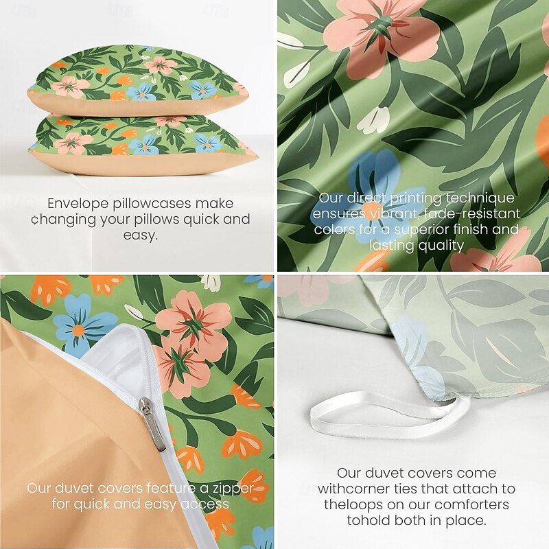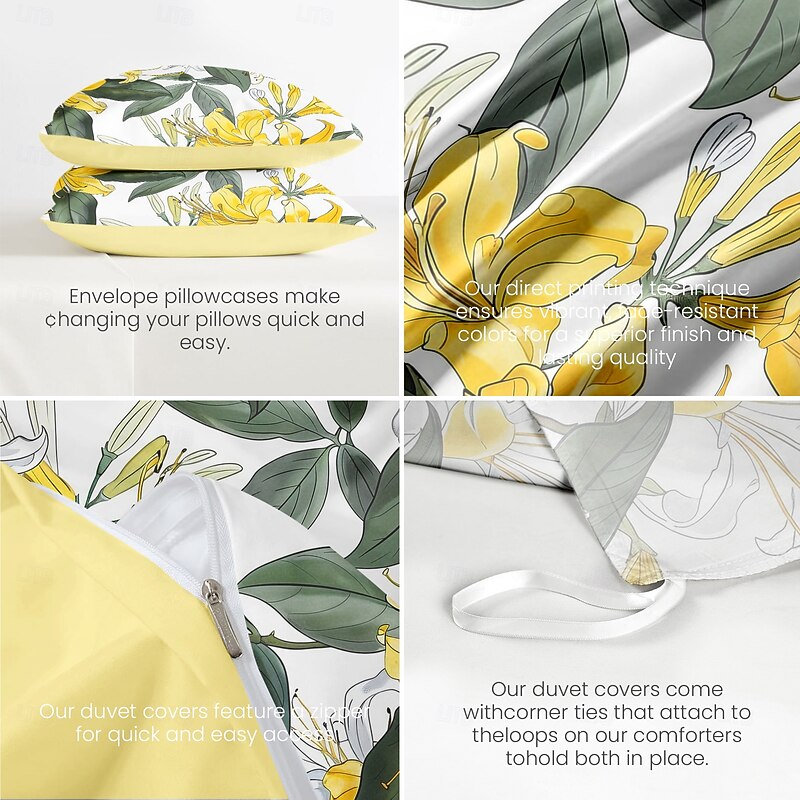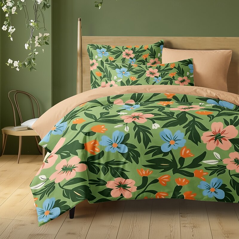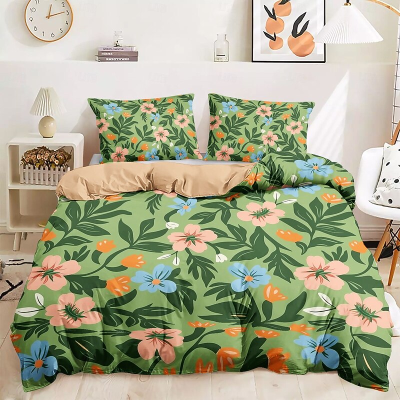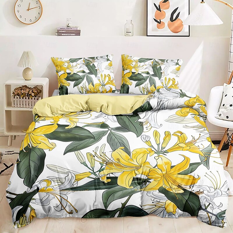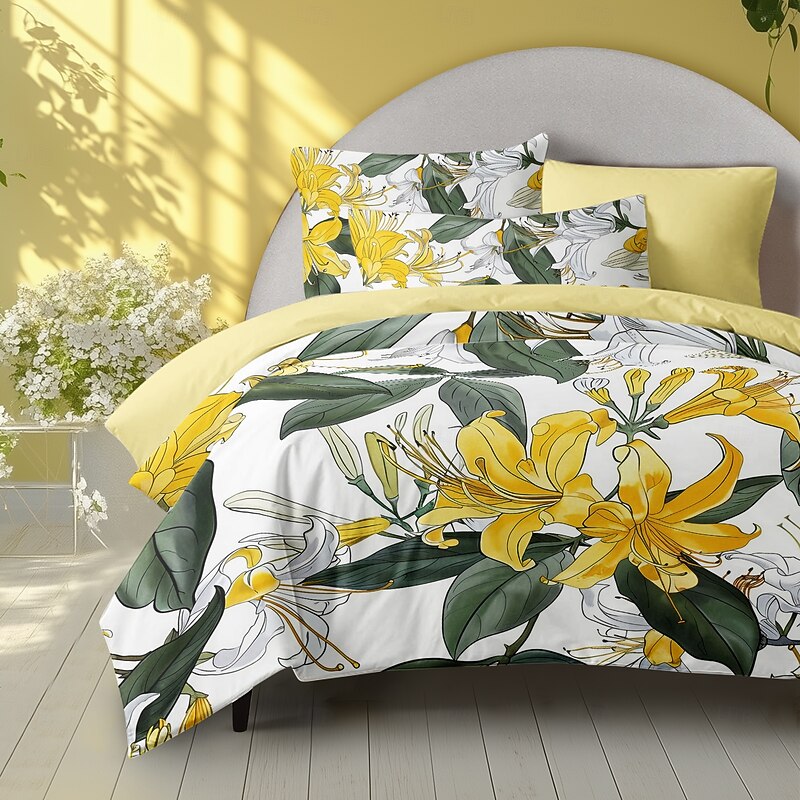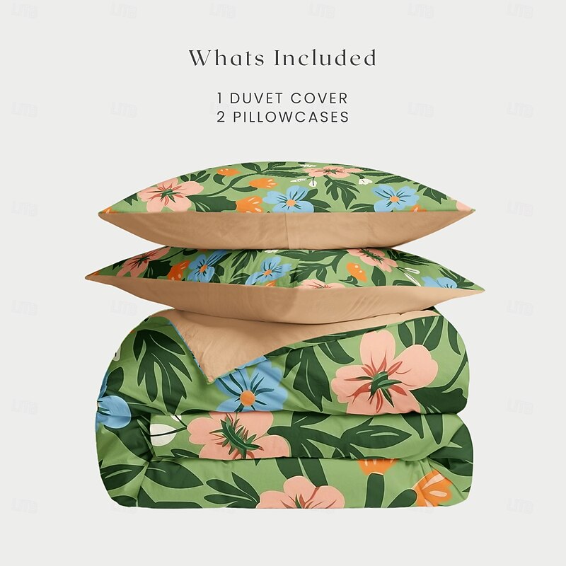 Floral Tropical Series Duvet Cover 3-Piece Set 100% Cotton or Polyester Super Soft Skin Friendly Long Lasting 1