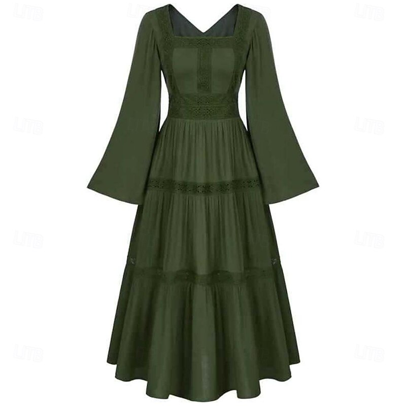 Retro Vintage Medieval Renaissance Midi Dress Bell Sleeve Viking Elven A-Line Fancy Dress Women's Fantasy Halloween Carnival Vacation Casual Daily LARP Adults Dress Spring & Summer 1