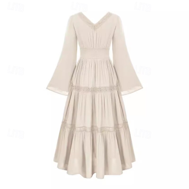 HOT ! Retro Vintage Medieval Renaissance Midi Dress Bell Sleeve Viking Elven A-Line Fancy Dress Women's Fantasy Halloween Carnival Vacation Casual Daily LARP Adults Dress Spring & Summer