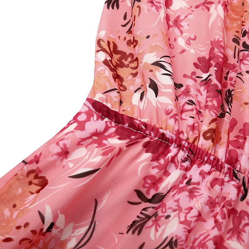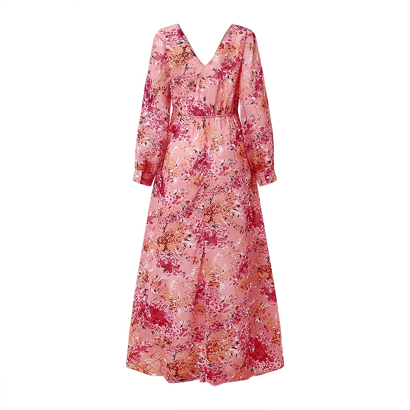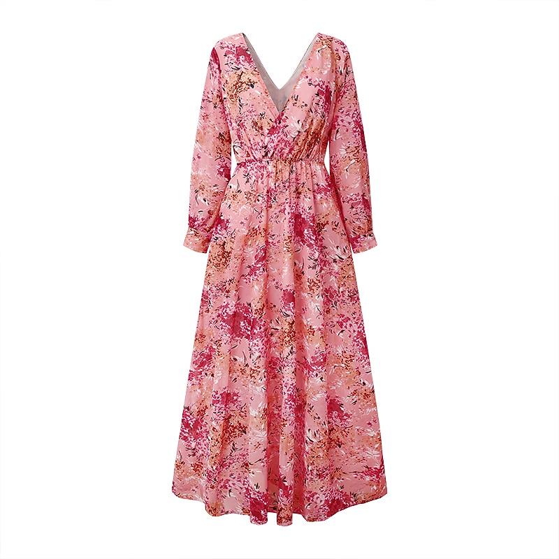 More information about Women's Swing Dress Maxi long Dress Pink Long Sleeve Floral Print Lantern Sleeve Spring Summer Deep V Elegant Boho 2023 S M L XL XXL XXXL
